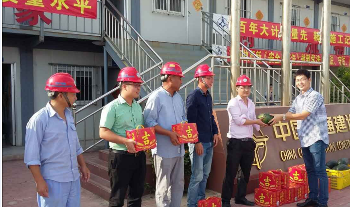 夏日炎炎,酷暑難耐。股份公司工會(huì)在珠海大橫琴集團(tuán)工會(huì)的指導(dǎo)下,本著“以人為本、關(guān)愛職工”的精神,以關(guān)心職工的工作和生活為出發(fā)點(diǎn),積極策劃、周密安排,多方籌資,迅速啟動(dòng)一系列“夏送清涼”慰問活動(dòng)。為保證此項(xiàng)活動(dòng)的順利展開,6月底,集團(tuán)工會(huì)專門下發(fā)《關(guān)于開展“送清涼”慰問活動(dòng)的通知》,由工會(huì)統(tǒng)一部署,在全公司各項(xiàng)目工地廣泛開展了“關(guān)愛職工,夏送清涼”活動(dòng),向一線工人贈(zèng)送西瓜、涼茶,講解防暑、降溫知識(shí)。