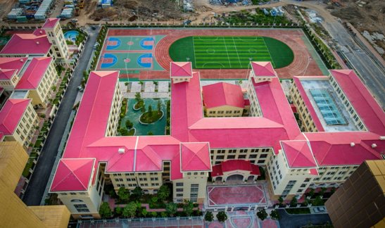 學校采用歐式建筑風格,配以嫣紅屋頂與米黃色外墻,與蔥綠的操場交相輝映,整體呈現(xiàn)明快活潑的氣息。其間還設(shè)有陶藝館、美術(shù)館、大型多功能廳等多種設(shè)施,充分滿足素質(zhì)教育的硬件需求。為提升教育品質(zhì),建成后,學校引入珠海容閎學校運營管理。